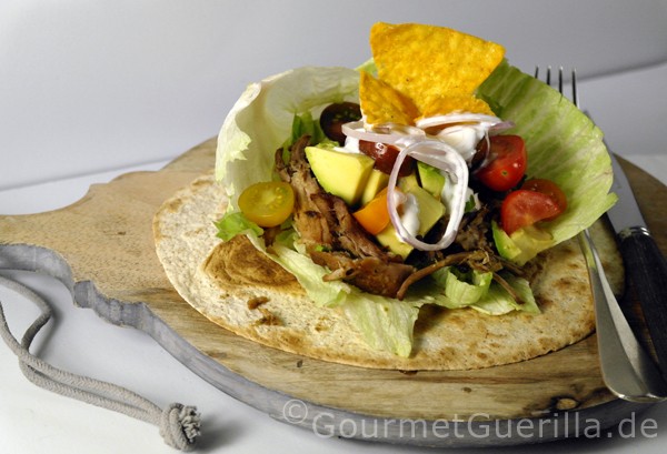 Meine nette Kollegin Denise ist praktischerweise halbmexikanischer Abstammung … und hat mir die Authentizität von meinem Carnitas-Rezept wohlwollend bestätigt. Ihre Mama kocht das häufiger. Denn Carnitas ist erfreulich einfach und mit ein paar Handgriffen zuzubereiten – braucht allerdings ein bißchen Zeit. Am besten man bereitet die Carnitas abends für den nächsten Tag vor oder legt direkt am Sonntagmorgen für ein leckeres Mittagessen los …
