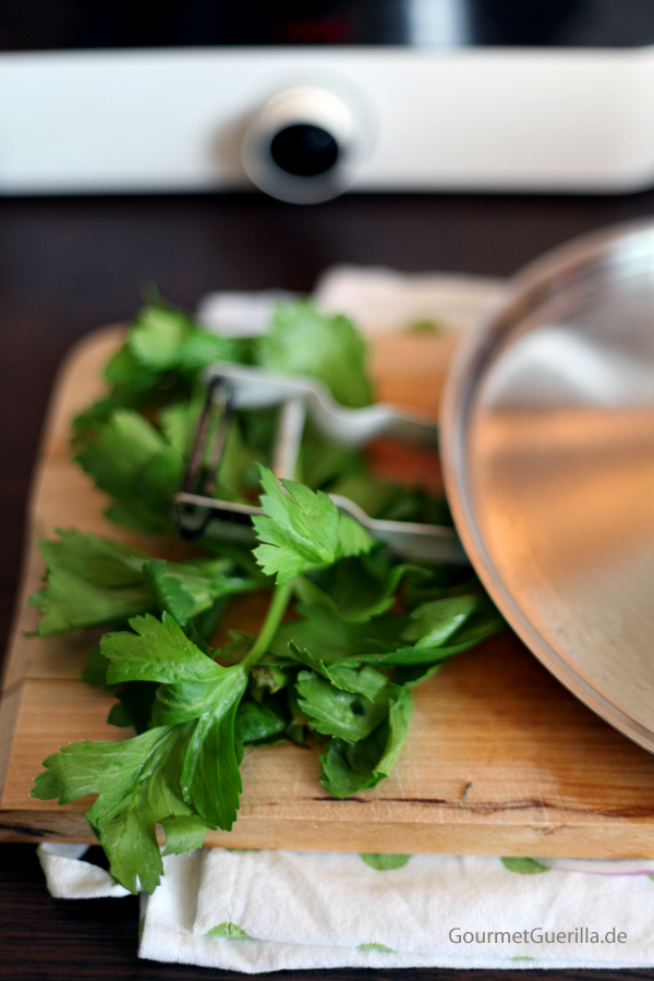 Vor dem Servieren etwas abkühlen lassen und nach Geschmack mit gehackter Petersilie garnieren