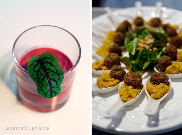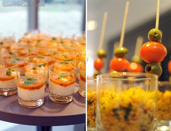 Daher haben wir uns ein „Non-flying Buffet” ausgedacht, bei dem der Großteil der Speisen schon praktisch in Gläschen oder auf Tellerchen vorportioniert ist. Das lässt sich super vorbereiten, sieht schön bunt aus und macht richtig was her. Außerdem braucht man noch schnell ungefährt 500 kleine Gläser und ein riesiges amerikanisches Auto für den Transport. Und dann kann es losgehen.