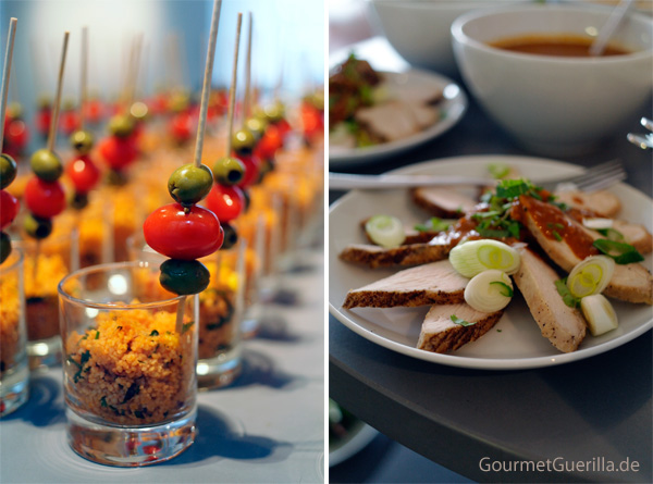 Es hätte natürlich auch sein können, dass wir uns bei den Vorbereitungen nach zwei Stunden am liebsten gegenseitig die Kochmesser in relevante Körperteile getrieben und danach nie wieder ein Wort miteinander gesprochen hätten. Aber das Gegenteil ist eingetreten: Wir waren entspannt und strukturiert, haben richtig gut harmoniert, hatten eine Menge Spaß, und – das wichtigste von allem – haben leckeres Essen für 40 Personen auf die Beine gestellt.