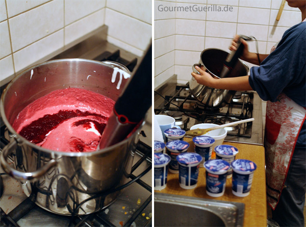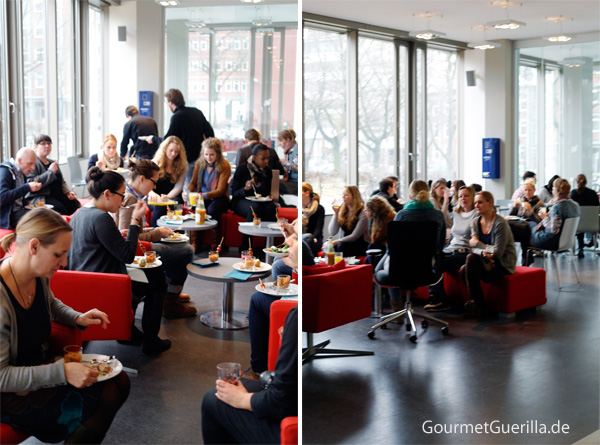 Mit Miriam saß ich dann also letzten Montagabend in der Bullerei und bei ein paar (leider nach wie vor überteuerten) Gläschen Weißwein haben wir unseren Schlachtplan entworfen. Wir kamen ziemlich schnell zu dem Schluss, dass das Kochen in der Agentur defintiv ausscheidet: typisch Büroküche – kein Herd, dafür zwei Mikrowellen.