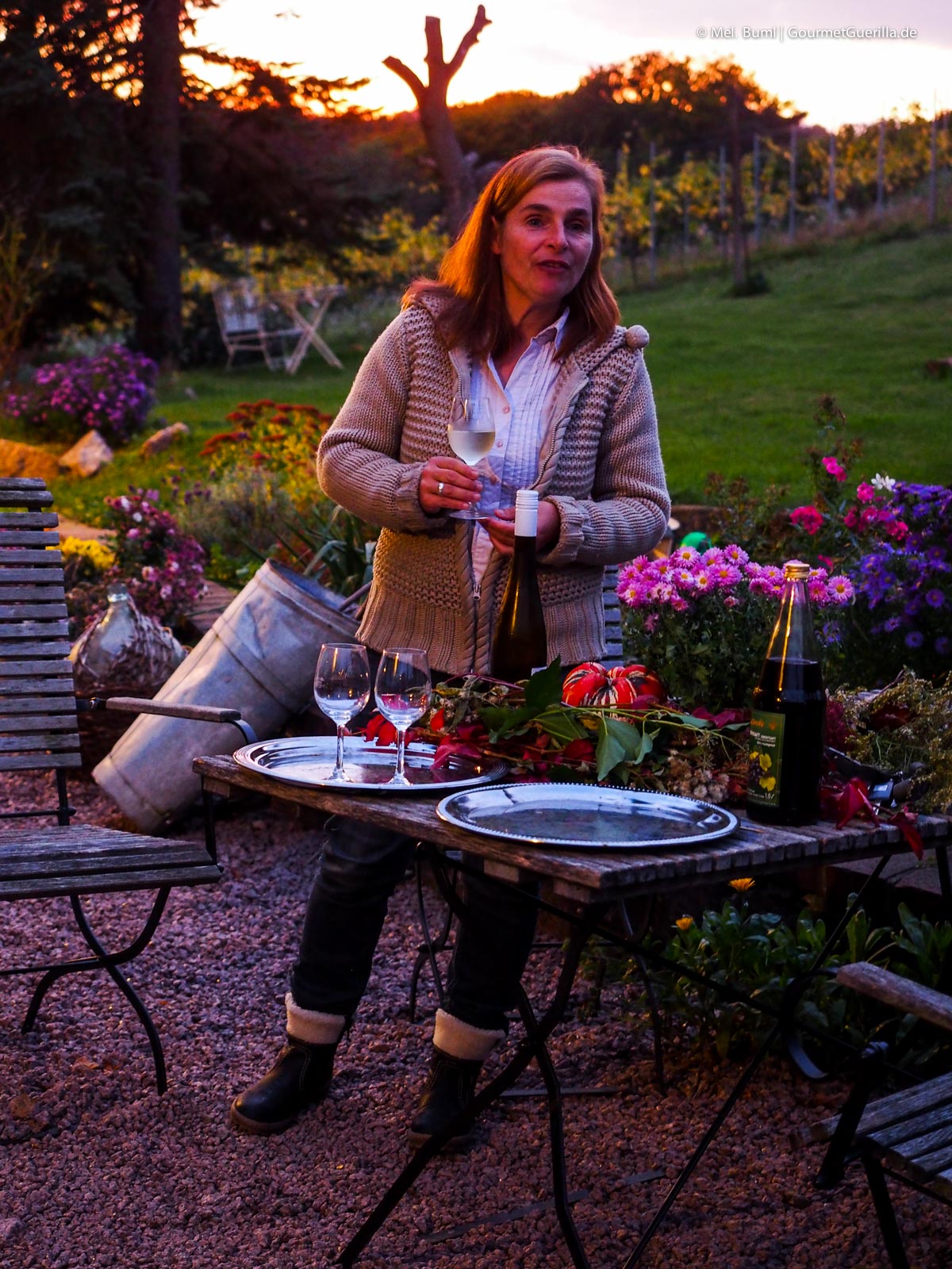Und ums Genießen und Entspannen soll es sich an diesem Abend noch intensiver drehen. In der Abenddämmerung machen wir uns darum einfach direkt durch den Weinberg auf den Weg zu Frau Fritz, unserer Gastgeberin und Eigentümerin von Mariaberg. Eine Weinprobe in der freien Natur und ein selbstgekochtes Abendbrot warten auf uns. Wir sind gespannt!
