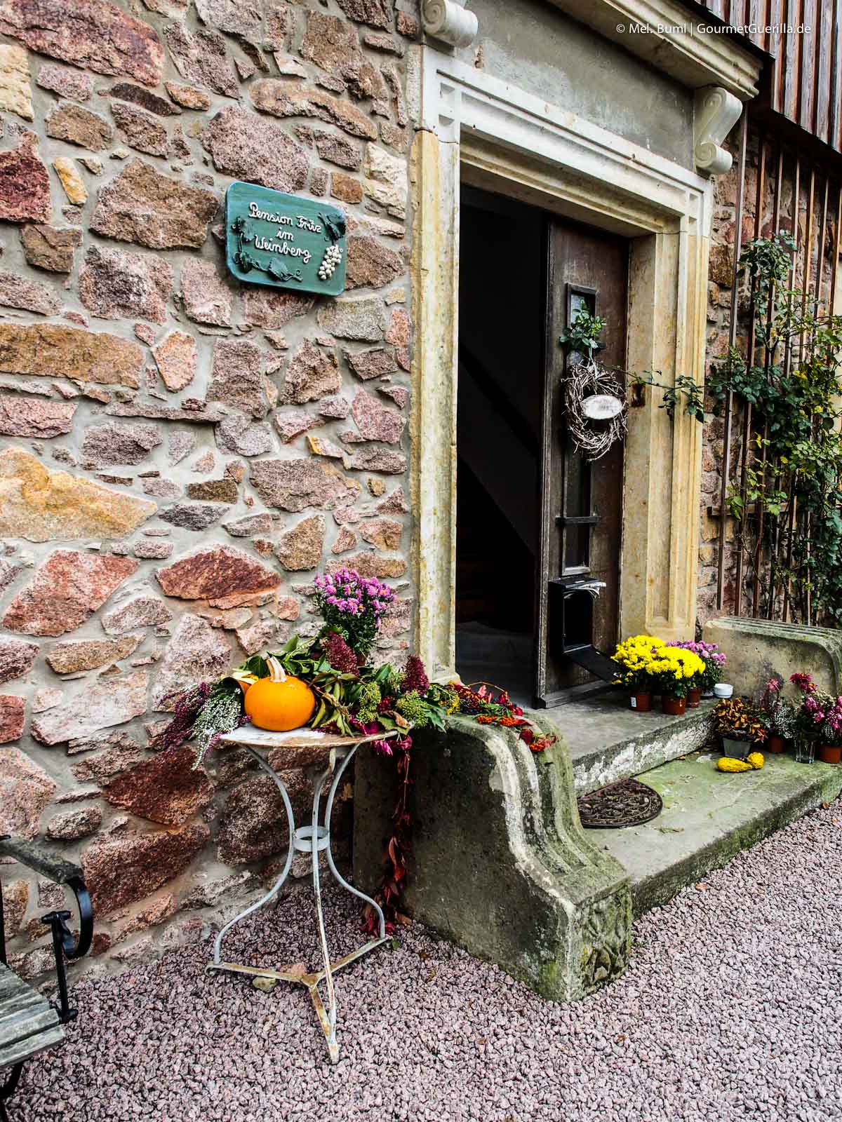 Zunächst wurde das Haupthaus am Fuße des Weinbergs mit viel Fingerspitzengefühl renoviert und zu einer Wohneinheit für die Familie plus Ferienwohnungen für Gäste umgebaut. Der ursprüngliche Stil wurde dabei erhalten und geschickt mit modernen Elementen kombiniert. Da die beiden nicht über endlos viel Kapital verfügten, haben sie viele der anfallenden Arbeiten in Eigenleistung erbracht. (Ich kann mir übrigens sehr gut vorstellen, wie Anja Fritz einen Sack voll Wackersteine schultert und mal eben das Baugerüst hinauf hieft.) „Nebenbei“ hat das Paar auch noch zwei Kinder bekommen und eine neue Idee gehabt: Der Mariaberg sollte wieder seine ursprünglichen Bestimmung zurückerhalten – als Weingut.