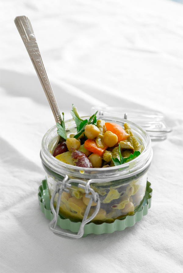Kichererbsensalat (ein bißchen orientalisch) mit zweierlei Bohnen und Artischocken