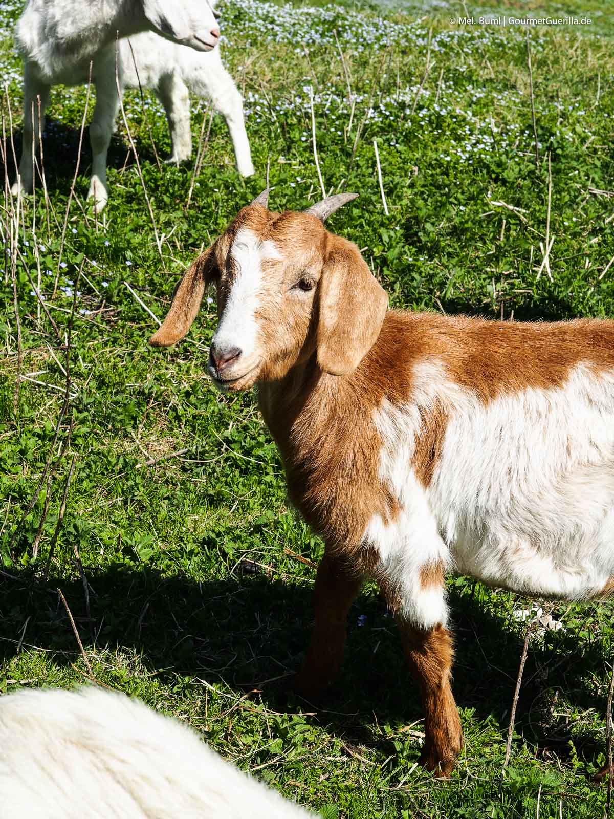 Kleine Randnotiz: Man sollte Chateau und Chalet nicht verwechseln – als Nordlicht kann sowas ja leicht passieren. Bei einem Chalet handelt es sich nämlich nicht um ein Schlößchen, sondern um eine Holzhütte. Das weiß ich jetzt also auch. Erfreulicherweise zeigten sich die Holzhütten auf dem weitläufigen Grundstück sehr schick, modern und mit allem Komfort inklusive Küche, offenem Kamin, 48-Kopf-Massagedusche und Whirlpool. Ach ja: Und hübsche Ziegen und imposante Berge gab es auch. Wer brauch da schon Schlößchen, ne.