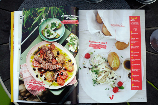 FAZIT: Die Tonalität wurde einmal durch den Hauptwaschgang gejagt und kommt in der neuen Ausgabe gereinigt etwas neutraler und zeitgemäßer daher. Die Rezepte sind lecker fotografiert und einfach nachzumachen, aber für meinen Geschmack hin und wieder ein bißchen zu basic. Die Frage, ob es sich wieder um recycelte Fotostrecken bzw. Rezepte handelt, kann ich an dieser Stelle nicht beantworten. Dafür ist das Layout laut, bunt und wild – und liefert dem Sammelsurium auf jeden Fall einen sympathischen Gesamtauftritt. Wer Lust auf eine entspannte, preiswerte Wochenendlektüre hat und sich ein bißchen von bunten Bildern und recht bekannten, unanspruchsvollen Rezepten inspirieren lassen möchte, liegt mit der deli sicherlich richtig.